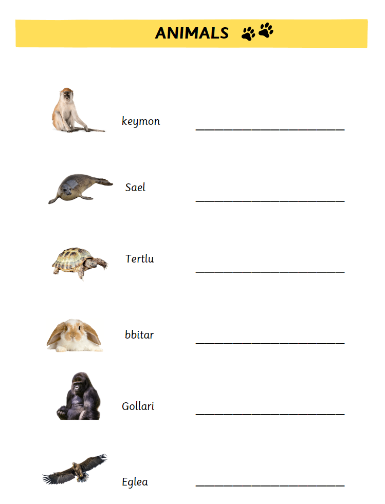Game 2: Cómo se escribe? What's my name? https://wordwall.net/es/resource/75222965/english/farm-animals