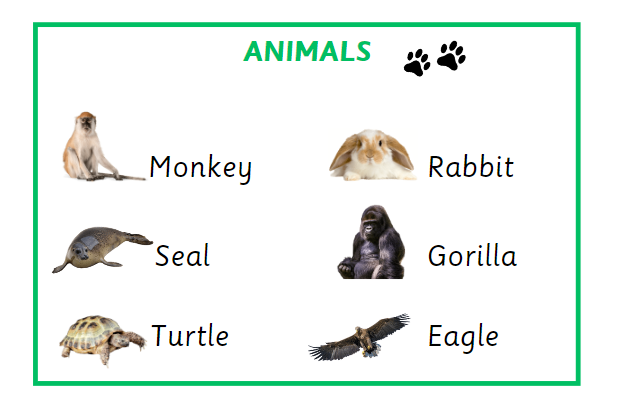 Activamos nuestros conocimientos previos y practicamos la pronunciación de estos animales con tarjetas de vocabulario (Flashcards).