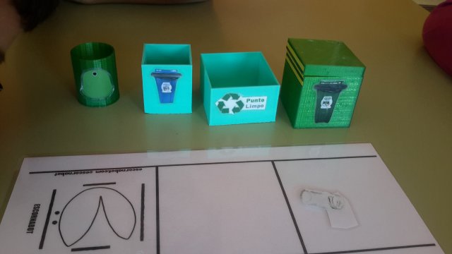 Temos tarxetas con lixo axeitado para os diferentes contedores por toda a plantilla |