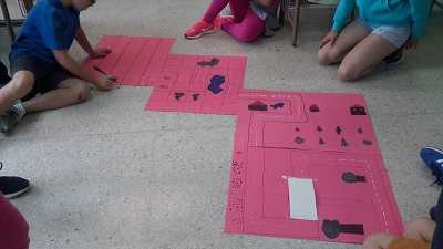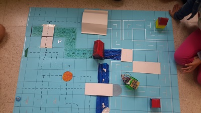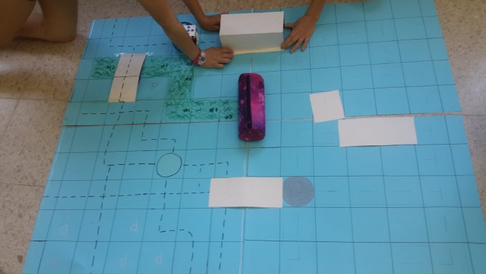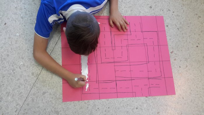 Dividimos a clase en 4 equipos. Cada equipo terá 2 cartolinas. Ó rematar unirémolas para facer un circuíto. Os diferentes equipos terán que porse dacordo para deseñar de maneira que o robot poida pasar dun lado ó outro ademáis deberá ter pontese túneles.