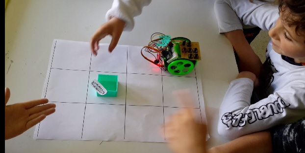 Como neste caso saiu a preposición "debaixo de", colocamos o robot na casiña da caixa |