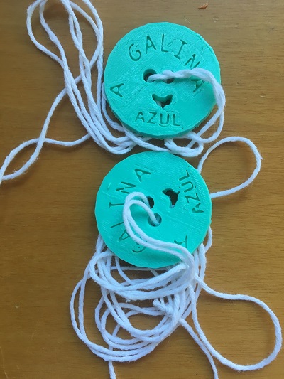 Para conmemorar as letras galegas, fixemos unhas zoadeiras da obra de Carlos Casares "A Galiña Azul" que repartimos a todo o alumnado do centro. Desta maneira damos a coñecer a obra de Casares e recuperamos un xoguete tradicional. Para deseñalas utilizamos a aplicación Tinkercad e imprimímolas coa impresora que nos prestaron no CFR