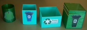 Neste curso temos en marcha un proxecto de reciclaxe, para traballar co alumnado a separación axeitada do lixo fixéronse varias alfombriñas para xogar co Escornabot. Para facelo máis interesante deseñamos e omprimimos contedores.