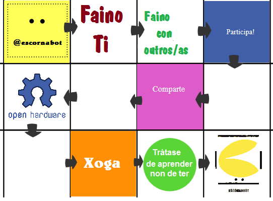 "O presente curso quere servir para que o profesorado do centro coñeza o proxecto Escornabot e a súa filosofía, e poida valorar criticamente as posiblidades que este ofrece para introducir as linguaxes de programación e as metodoloxías de aprendizaxe cooperativa e manipulativa nas súas programacións"