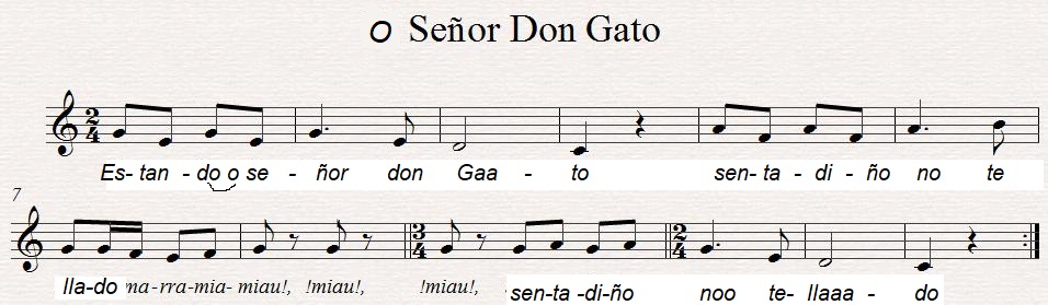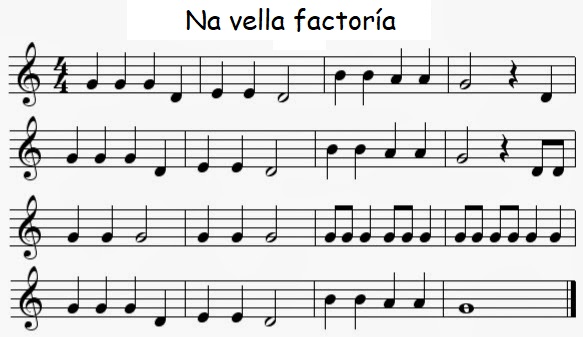 Este pentagrama corresponde a unha estrofa da copla e cada compás correspóndese con cadanseu verso.