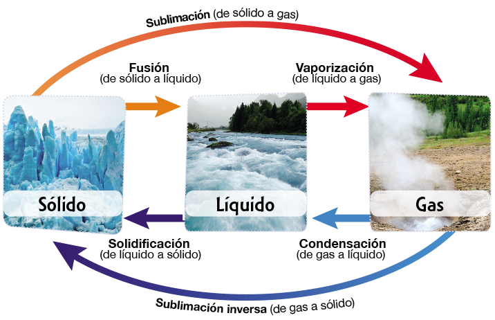 Os materiais poden presentarse en estado sólido, como a madeira; líquido, como o leite, e gasoso, coma o aire.