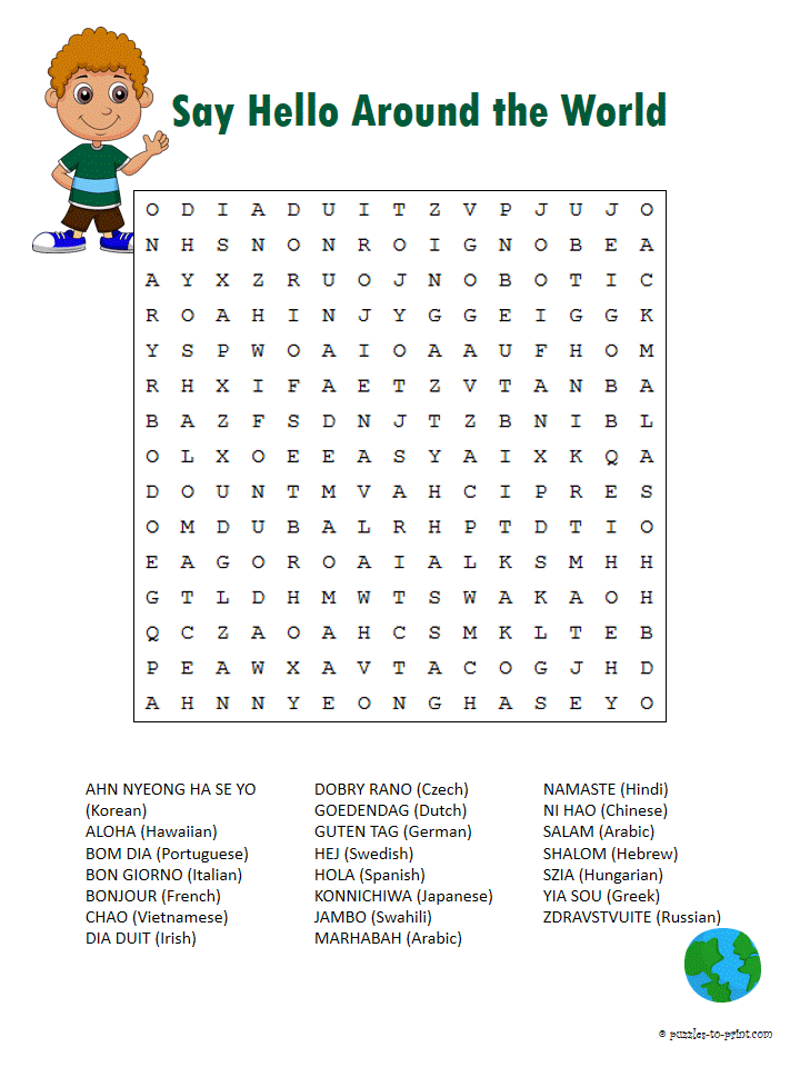 He adjuntado el crucigrama "Di Hola alrededor del mundo"