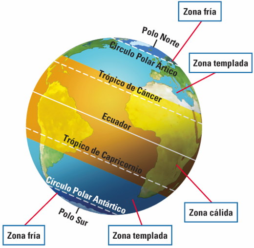 Na Terra existen 3 zonas climáticas: