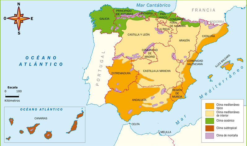 España está situada na zona tempera da Terra,