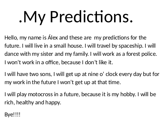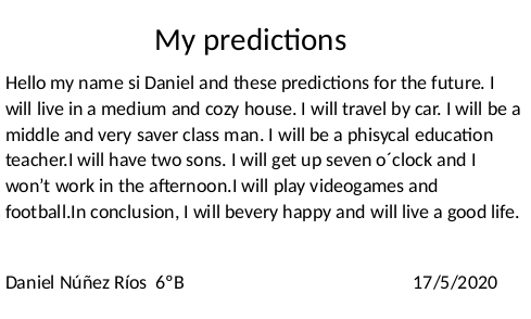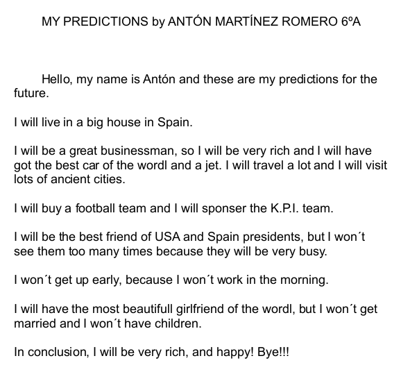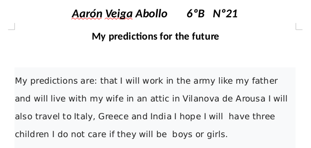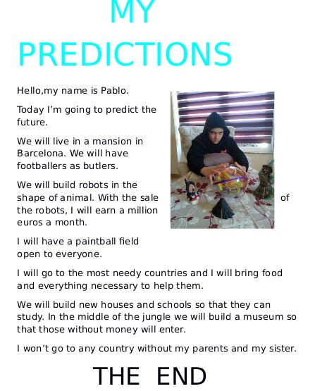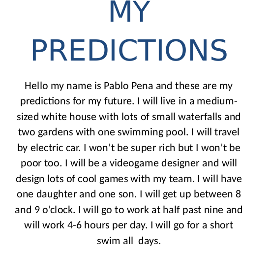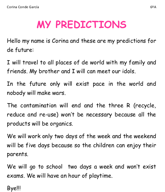 MY PREDICTIONS FOR THE FUTURE 6TH GRADE