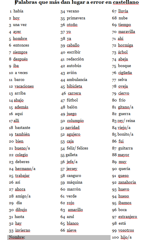 Ditado das 100 palabras cast