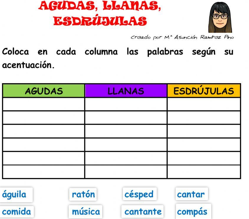 Agudas, llanas, esdrúxulas.Liveworksheet 1