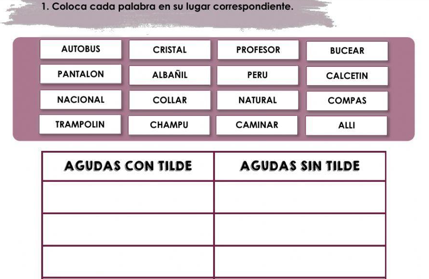 Ficha acentuación agudas- repaso