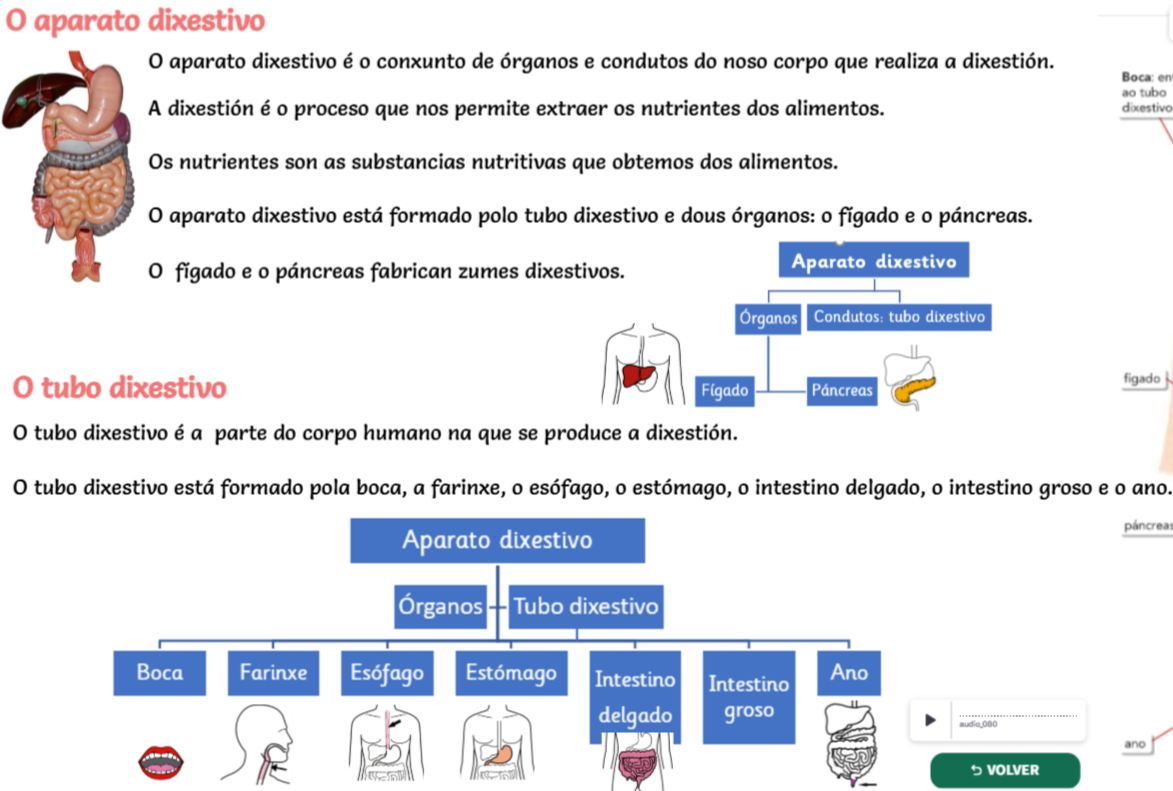 C da Natureza: Estudar o nome dos órganos da función de Nutrición con cada un dos aparatos. Ver os vídeos de Aula Virtual do aparato dixestivo e da dixestión.