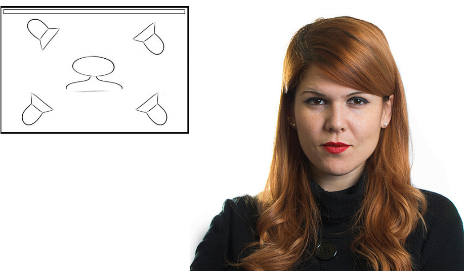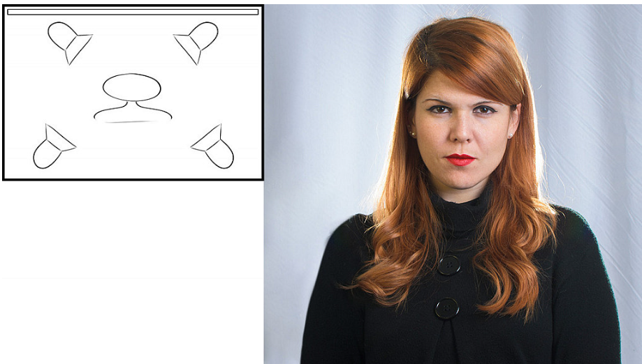 A calquera dos esquemas con contraluz que vimos antes podemos agregarlle dous contraluces en lugar dun só. Situarémolos a 45º e -45º por detrás do suxeito, para realzar ambos lados da súa contorna.