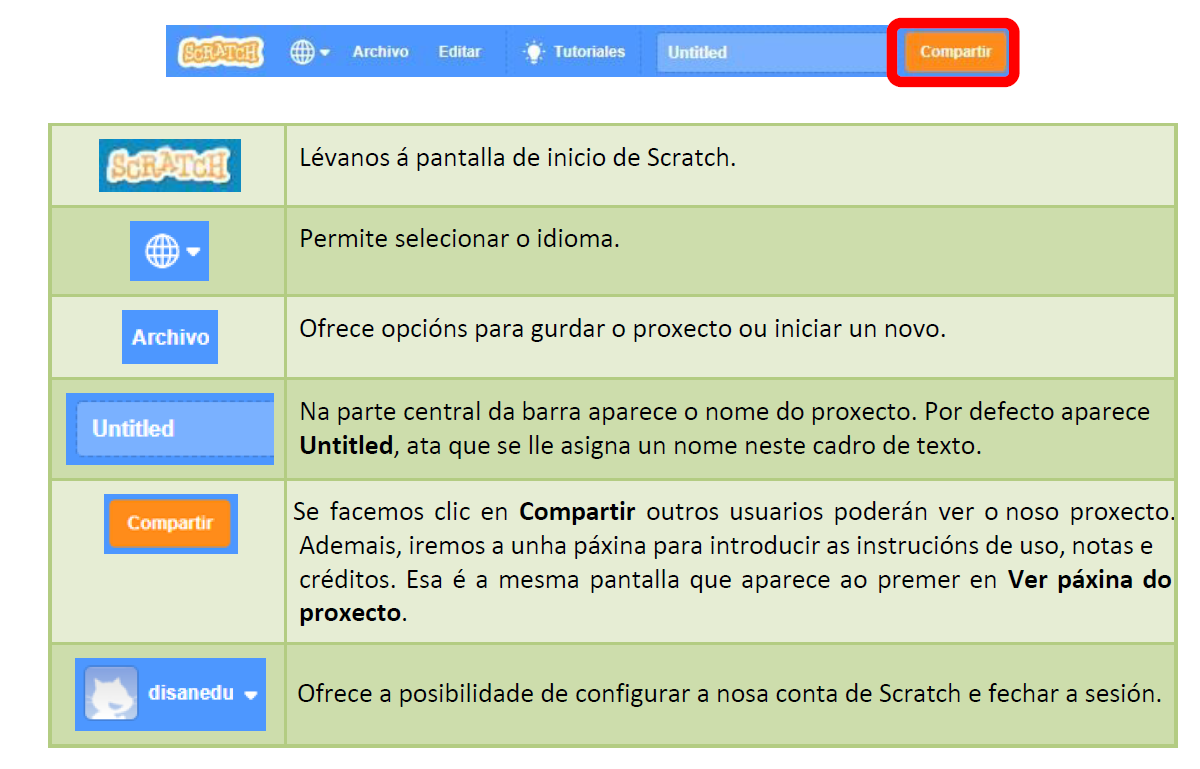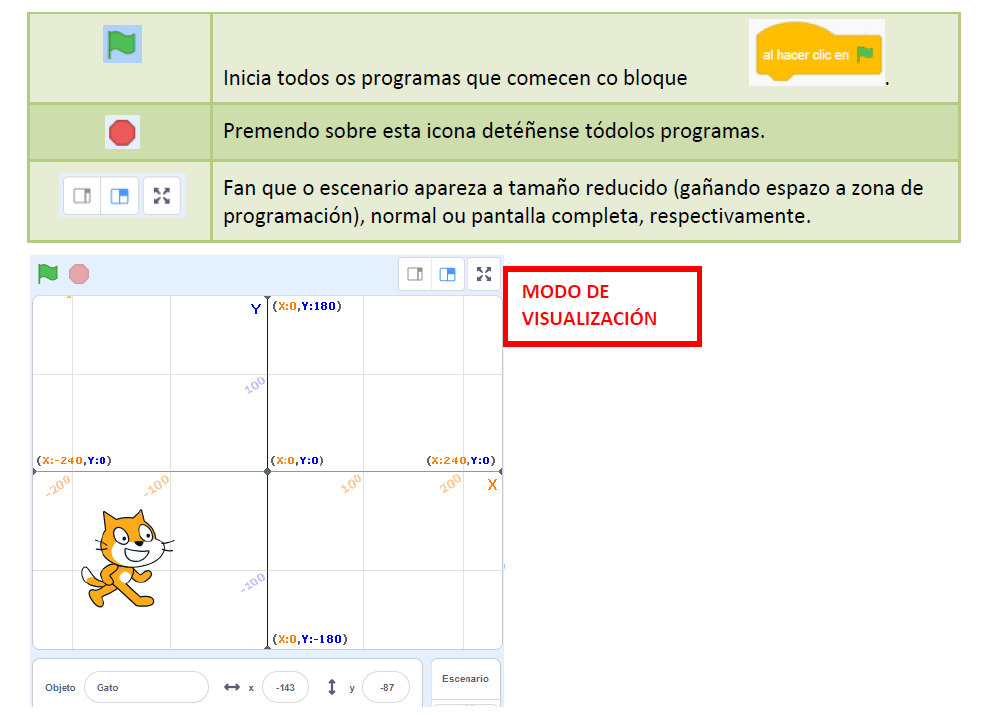 O Escenario é o lugar onde veremos cómo as nosas creacións: historias, xogos e animaciones cobran vida.