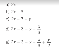 d) O dobre dun número, menos tres unidades, máis outro número, menos a terceira parte do primeiro número.