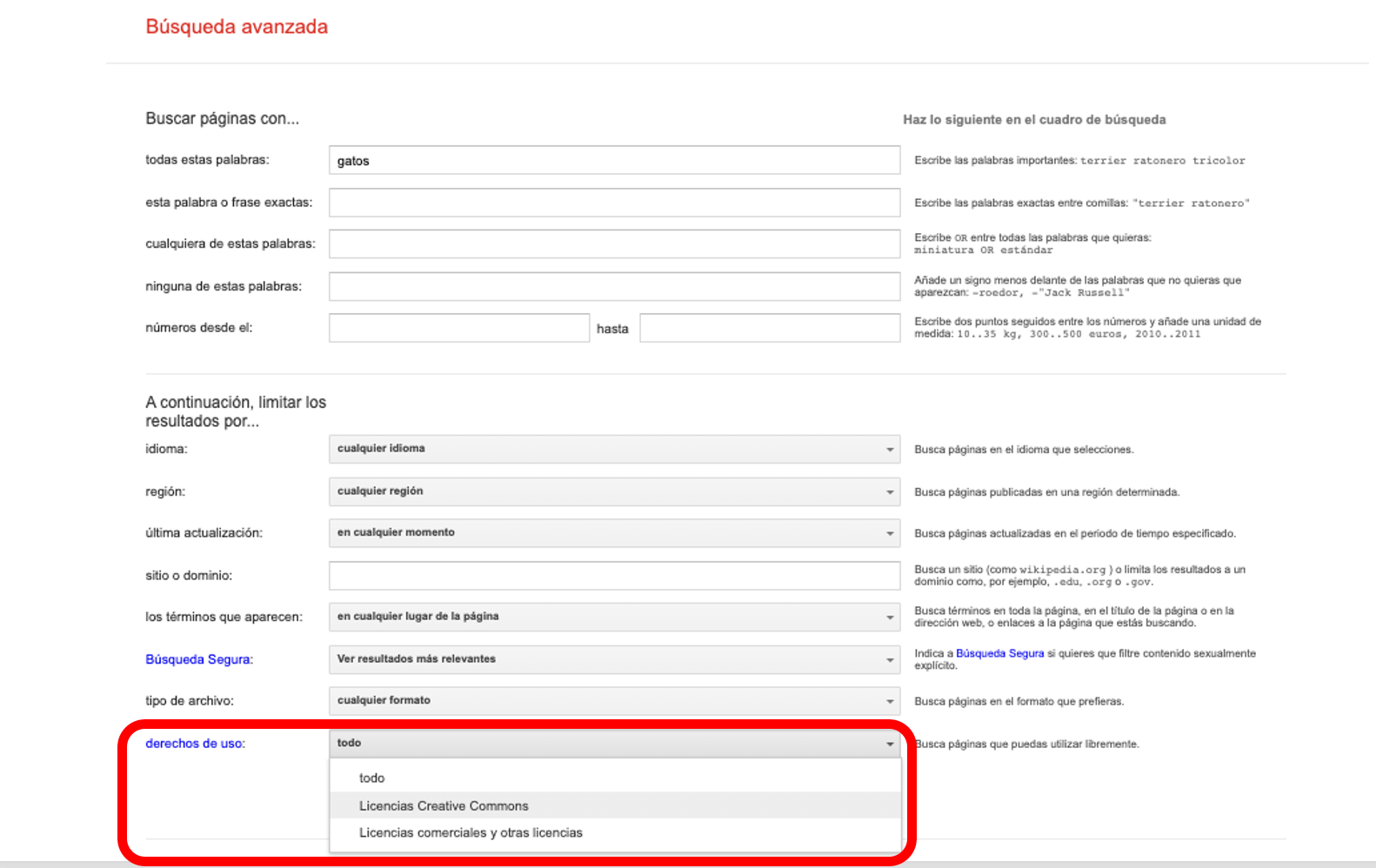 Los buscadores generales ofrecen distintas herramientas para buscar contenidos libres.