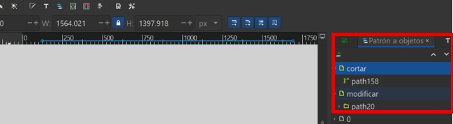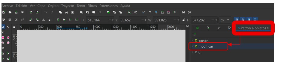 Volver a patrón a objetos y seleccionar todos los objetos de la capa cortar y de la capa modificar: