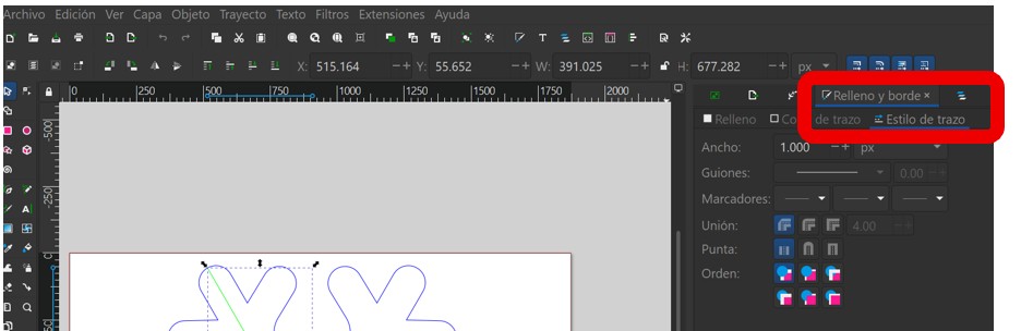 3. Con los elementos marcados, ir a relleno y borde > estilo de trazo