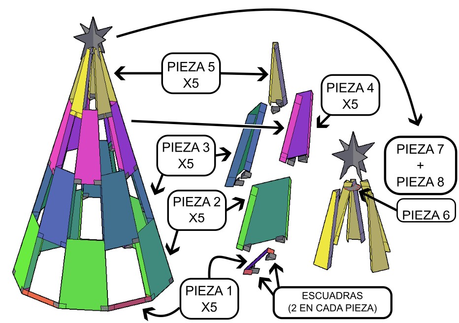Descargar el archivo ARBOL_PIEZA5.SVG y modificar en Inkscape siguiendo los mismos pasos que con el archivo anterior. Cortar 5 unidades de esta plantilla.