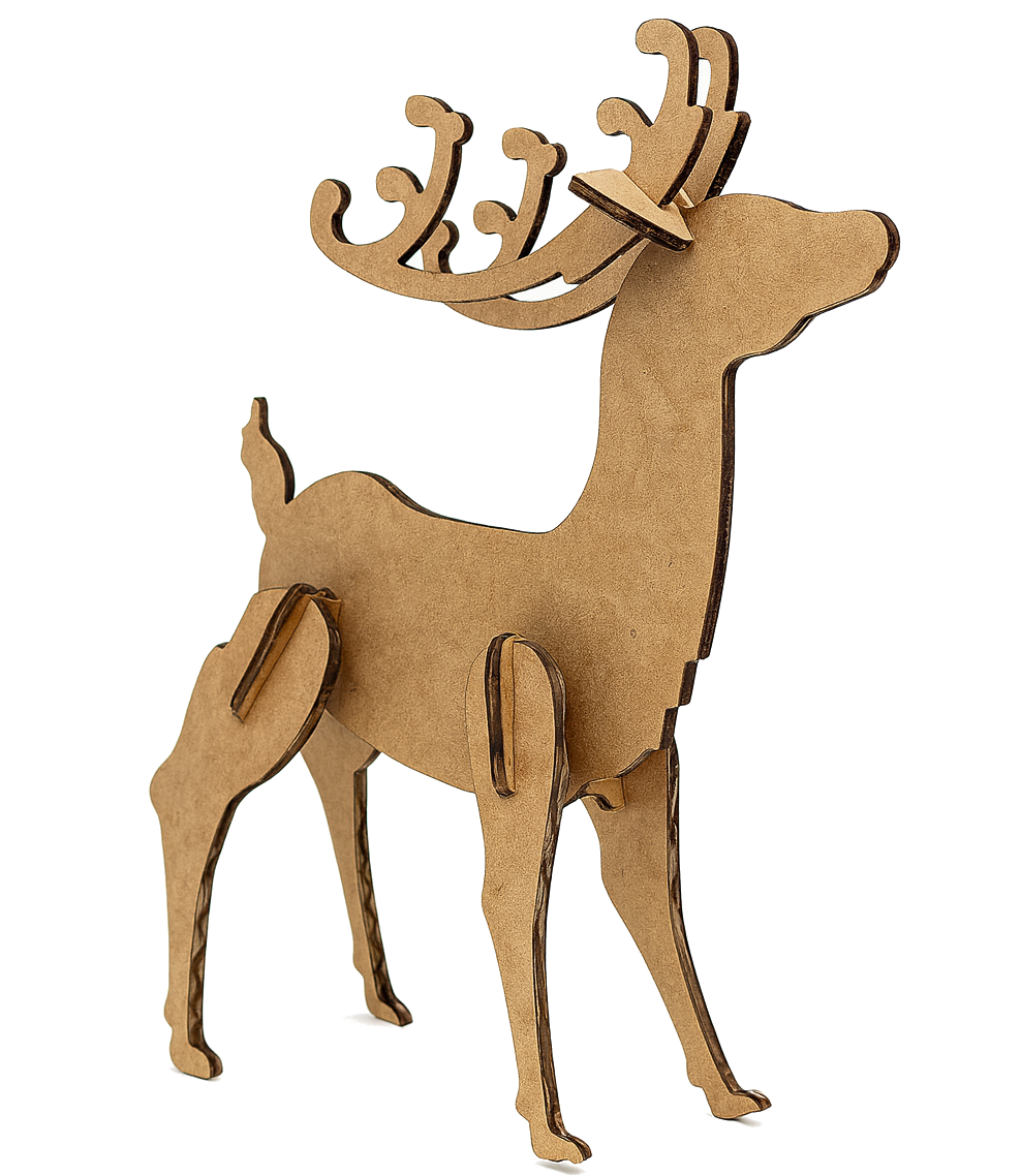 Descargar los archivos RENO2A.svg y RENOB.svg y modificar en Inkscape antes de usar, ya que deberá de ajustarse la ranura al espesor del material a cortar. Modificar según este enlace: Instrucciones para ajustar las ranuras según el espesor del material. Cortar 1 unidad de cada plantilla para encajar.