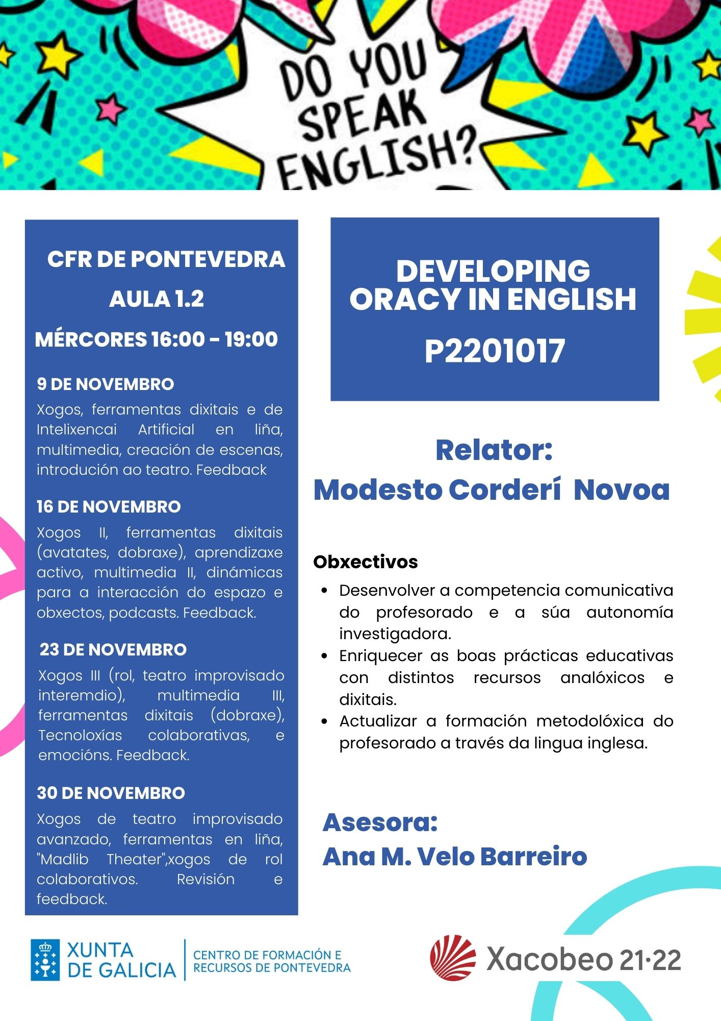 Actividade de formación que fomenta o desenvolvemento da competencia comunicativa en lingua inglesa.
