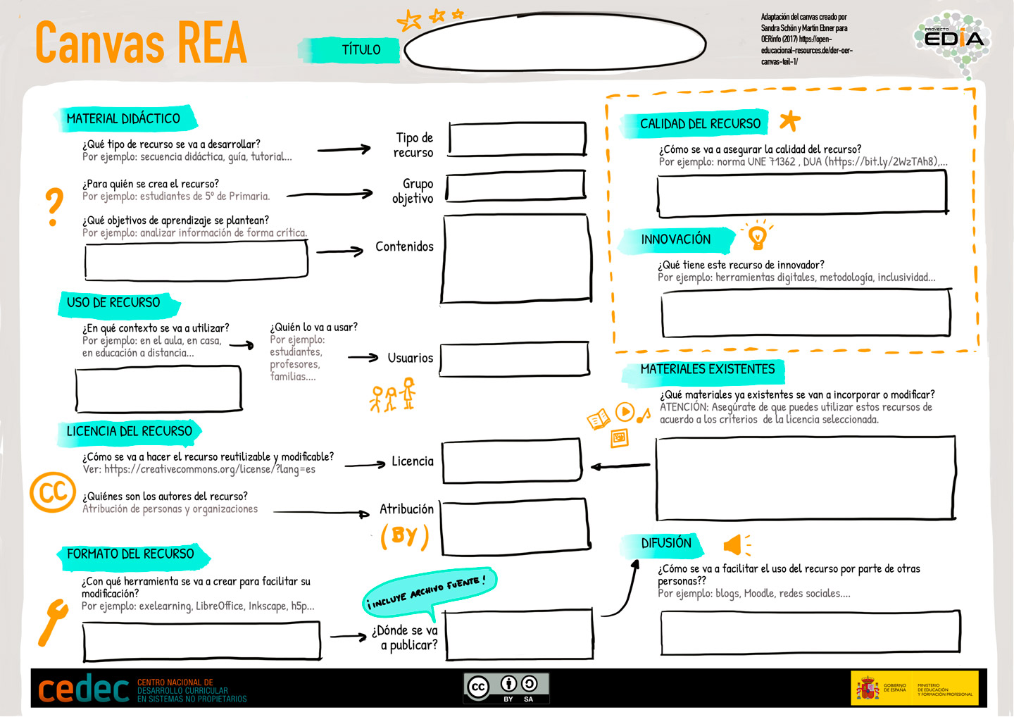 Como en calquera proxecto docente ou laboral a planificación é imperativa. Polo tanto á hora de crear un REA debemos marcar unha determinada folla de ruta. Neste caso botamos man dun canva de CeDeC cos pasos a seguir