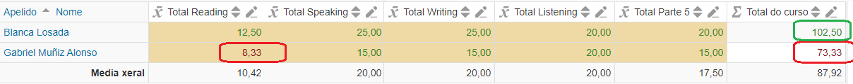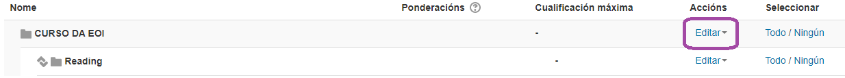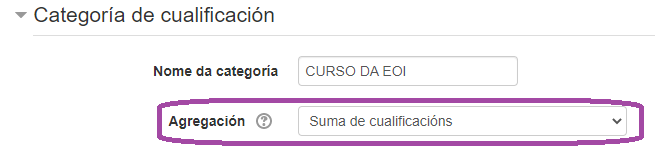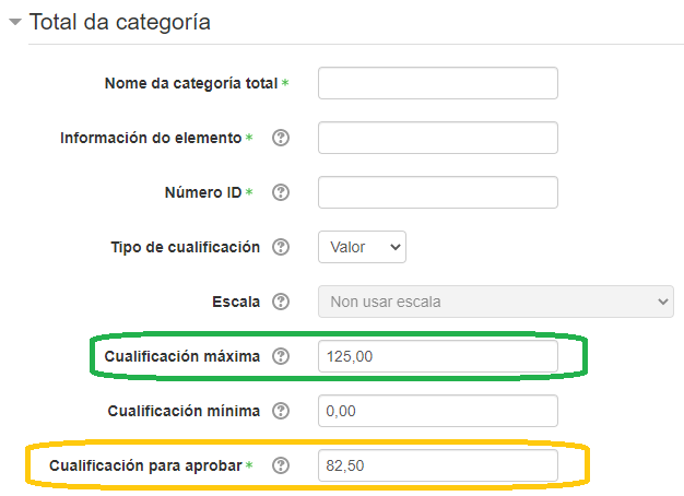 - Configuramos a categoría total do curso da seguinte maneira: