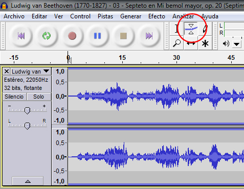 Cando traballamos nun proxecto de audio, unha das necesidades que podemos ter é a de subir e baixar o volume ao longo dunha pista. Audacity inclúe unha ferramenta, son envolvente, que nos permitirá moldear ese control do volume dun xeito moi sinxelo.