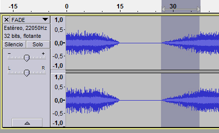 Moitas veces queremos que o audio teña unha transición suave entre o silencio e o son. Cos efectos Aparecer (Fade In) e Desaparecer (Fade Out) do menú efecto, conseguiremos o desexado.