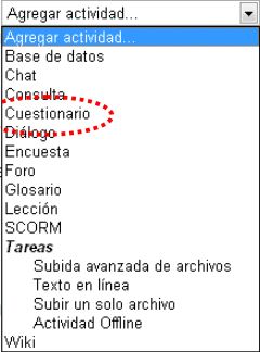 Dentro da lista de actividades que podemos colocar están os cuestionarios