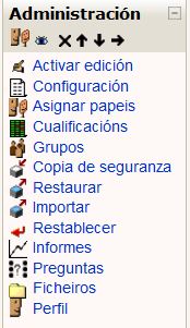 Ao banco de preguntas accédese dende o bloque de administración, e organízase en categorías de preguntas: