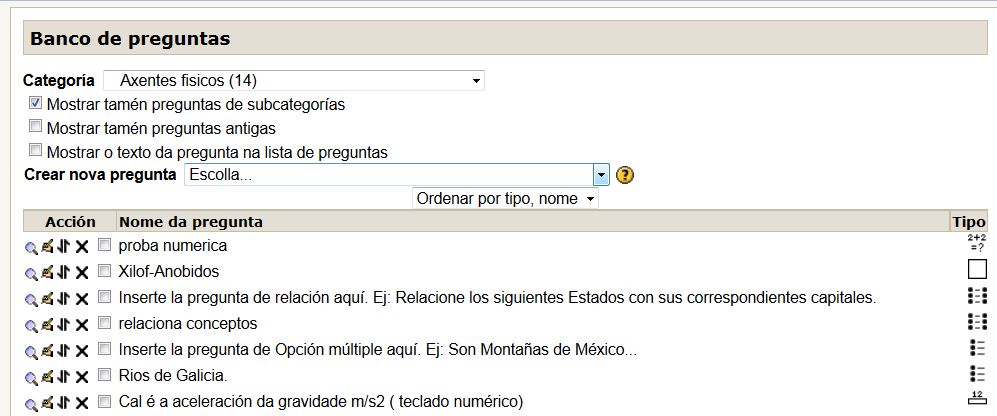 Cada tipo de pregunta ten o seu propio formato e as súas propias opcións