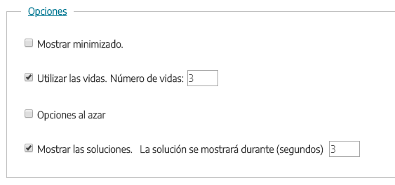 • Al hacer clic sobre el enlace de "Opciones" podremos configurar si queremos  mostrar las soluciones al azar y el tiempo en que se mostrará la solución, el número de vidas o si queremos minimizar el iDevice.
