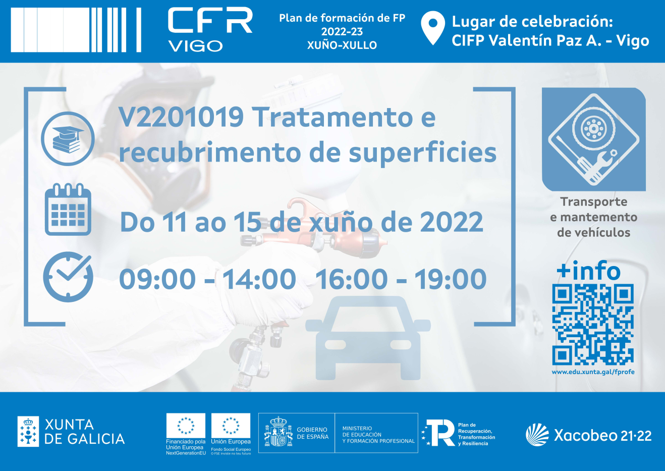 Esta actividade desenvolverase no CIFP Valentín Paz Andrade 11 ao 15 de xullo de 2022 de 09:00 a 13:00 horas e de 15:00 a 19:00 horas.