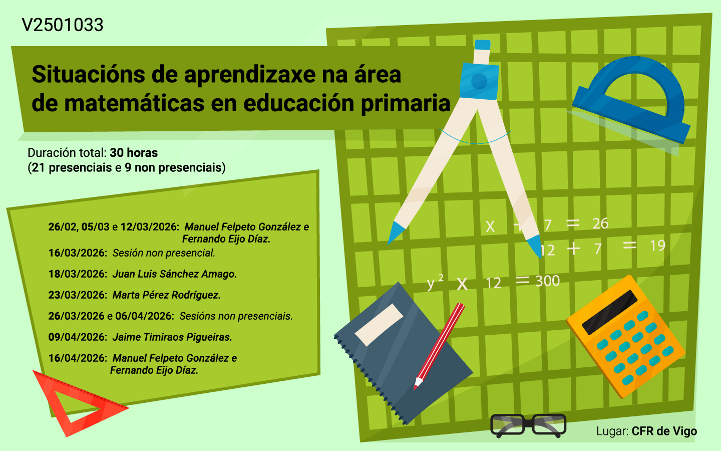 O curso pretende abordar o ensino e aprendizaxe das matemáticas en educación primaria a través das situacións de aprendizaxe.