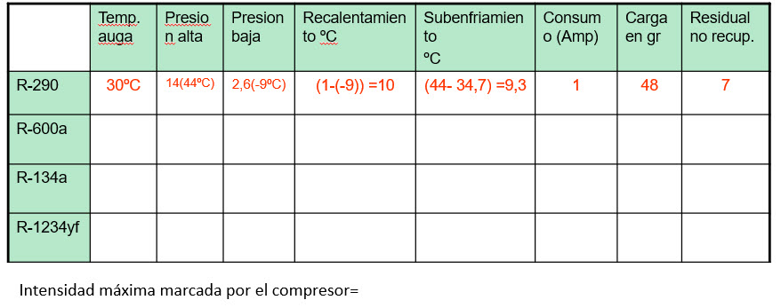 3.- Ajustas carga hasta conseguir recalentamiento sobre 10ºC (recuerda que deberías de estar cerca del régimen (menos de 11ºC)) (que no se dispare la temperatura de condensación por encima de 55ºC)