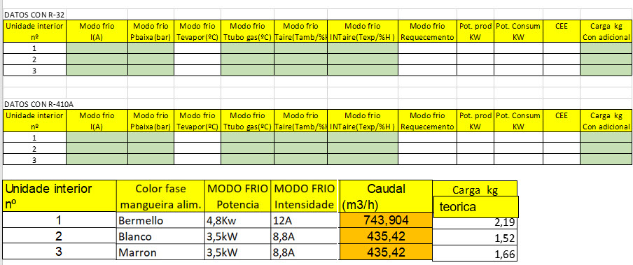 2º) Cargas por recalentamiento (modo frio) R-32 buscas 12ºC