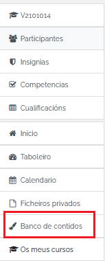 No menú de Navegación do teu curso (si non cambiaron o tema na Aula Virtual do teu centro, estaría a esquerda), tes a opción Banco de contidos
