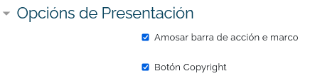 Cando creas un recurso H5P, na edición tes en Opción de presentación: