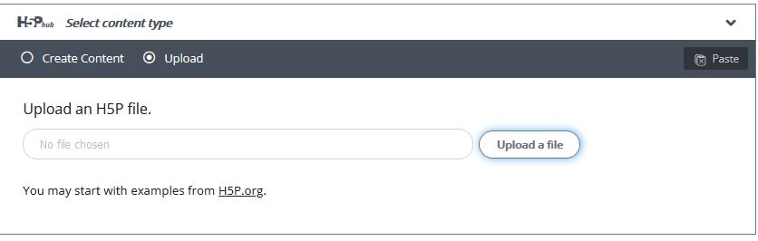 Logo en lugar de crear un novo, escolles "Upload" e no botón "Upload a file" seleccionas o arquivo .h5p