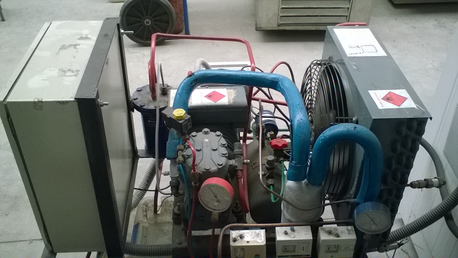 En expansión directa (prototipo 1) adaptouse unha cámara ca sua equipación para que poidera traballar con distintos refrixerantes incorporandolle as medidas de seguridad necesarias se estos fosen hidrocarburos.