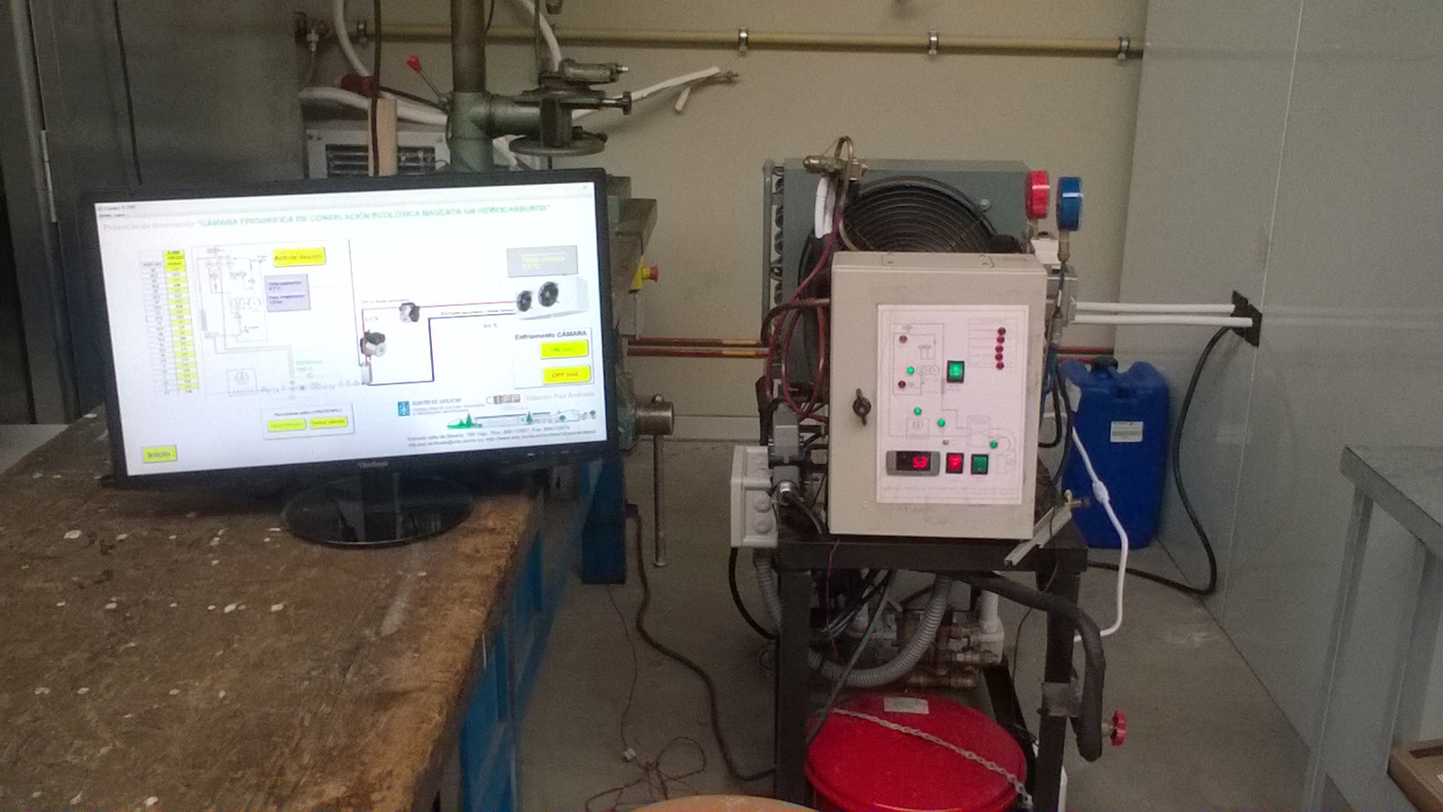 Ten cabida os hidrocarburos como fluídos frigoríficos ao ser uns equipos onde os riscos practicamente non existen montando todo o circuíto frigorífico no exterior. Inda así realizarase coas adaptacións e comprobacións necesarias de seguridade para o seu uso seguro. O fluído de transporte da enerxía frigorífica ao interior da cámara é mediante novas sustancias a base de acetato e formato potásico aproveitando o proxecto para testear a súa validez e eficiencia o non ter percorrido no mercado. Forzaronse fugas do hidrocarburo para analizar se as medidas de seguridade adoptadas responden adecuadamente anulando riscos.
