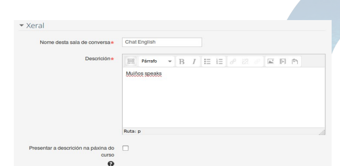 O módulo de actividade de conversa permítelles aos participantes ter discusións baseadas en texto, en tempo real, síncronas.