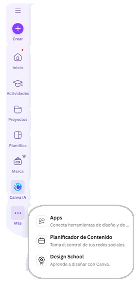 - Crear --> para facer un novo deseño, podendo escoller entre unha plantilla ou un deseño en blanco de determinado tipo