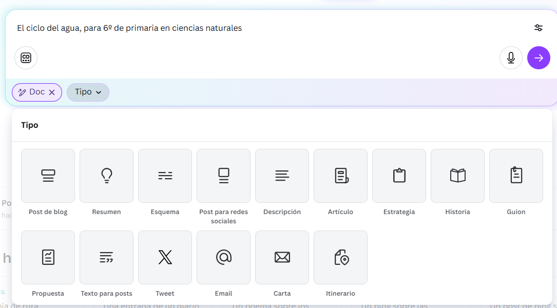2. Opción "Doc", pedirle un esquema a través de un prompt concreto