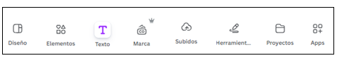 Imos describir as opcións que nos aparecen unha vez que accedemos ao panel de traballo en Canva.