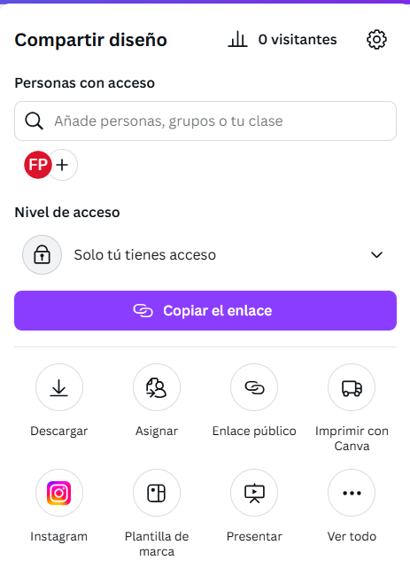 - Asignar --> crear tarefas para o alumnado, de xeito que se poden asignar a unha clase específica, establecer datas de entrega, traballo individual ou colaborativo e incluso recibir as entregas directamente en canva coa posibilidade de revisalas e comentalas.