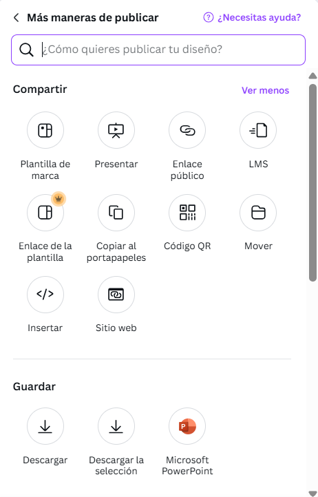 - "Tres líneas horizontales - Menu" --> accedemos á ventá principal de canva de opcións xerais